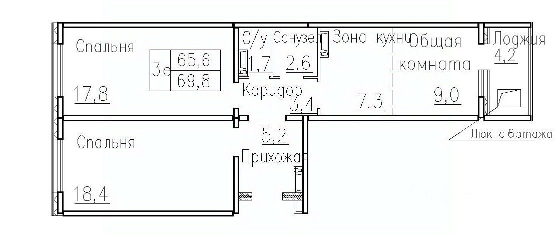 Общая площадь69,8 м2