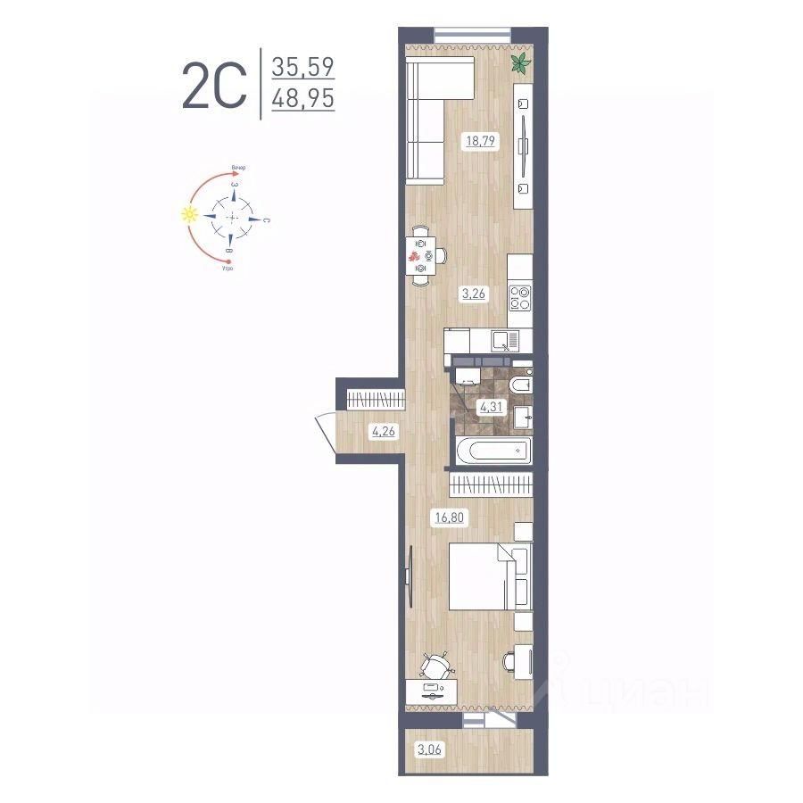 Общая площадь48,95 м2