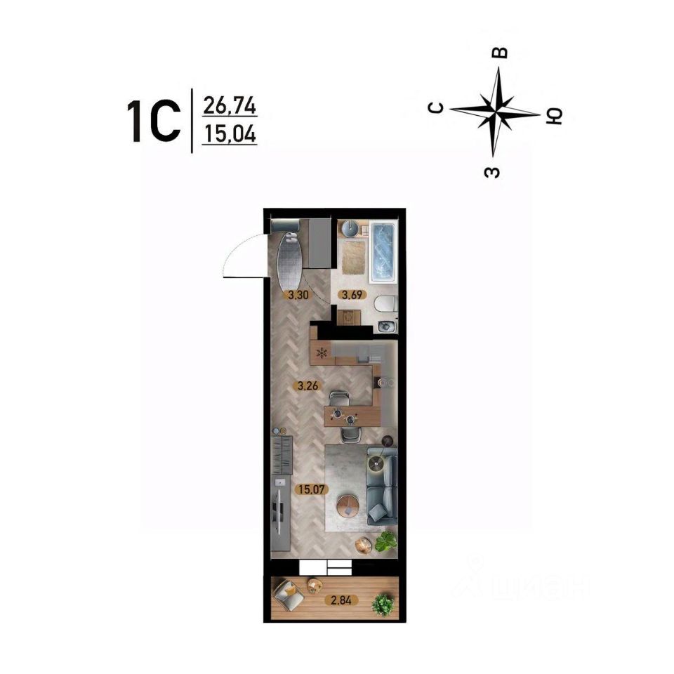 Общая площадь26,74 м2