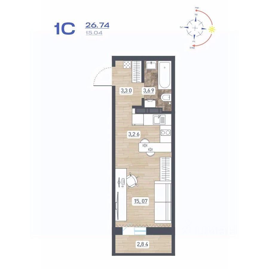 Общая площадь26,74 м2