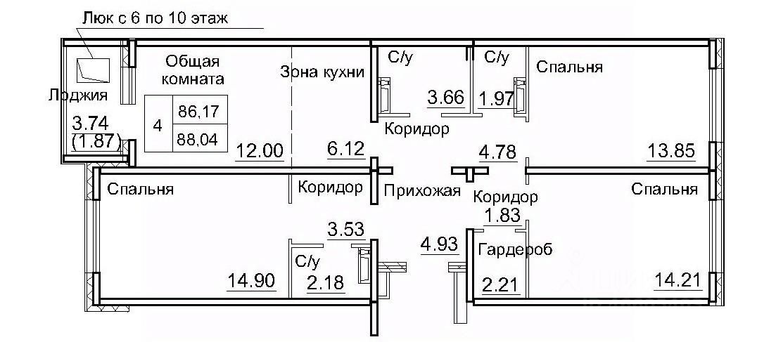 Продаётся 4-комнатная квартира в сданном доме (3-й микрорайон, 22 (Дом 12а)), срок сдачи: IV-кв. 2024, общей площадью 89.4 кв.м., на 6 этаже. Новый уровень комфорта, для жизни в микрорайоне Краснообский.