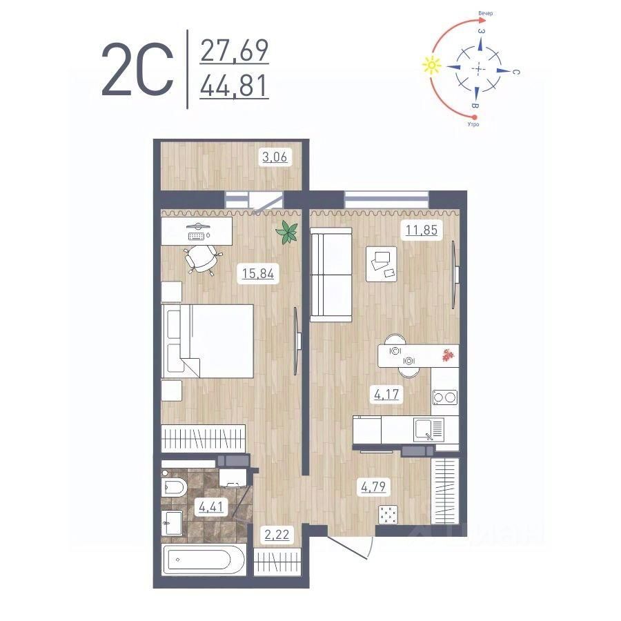 Общая площадь44,81 м2