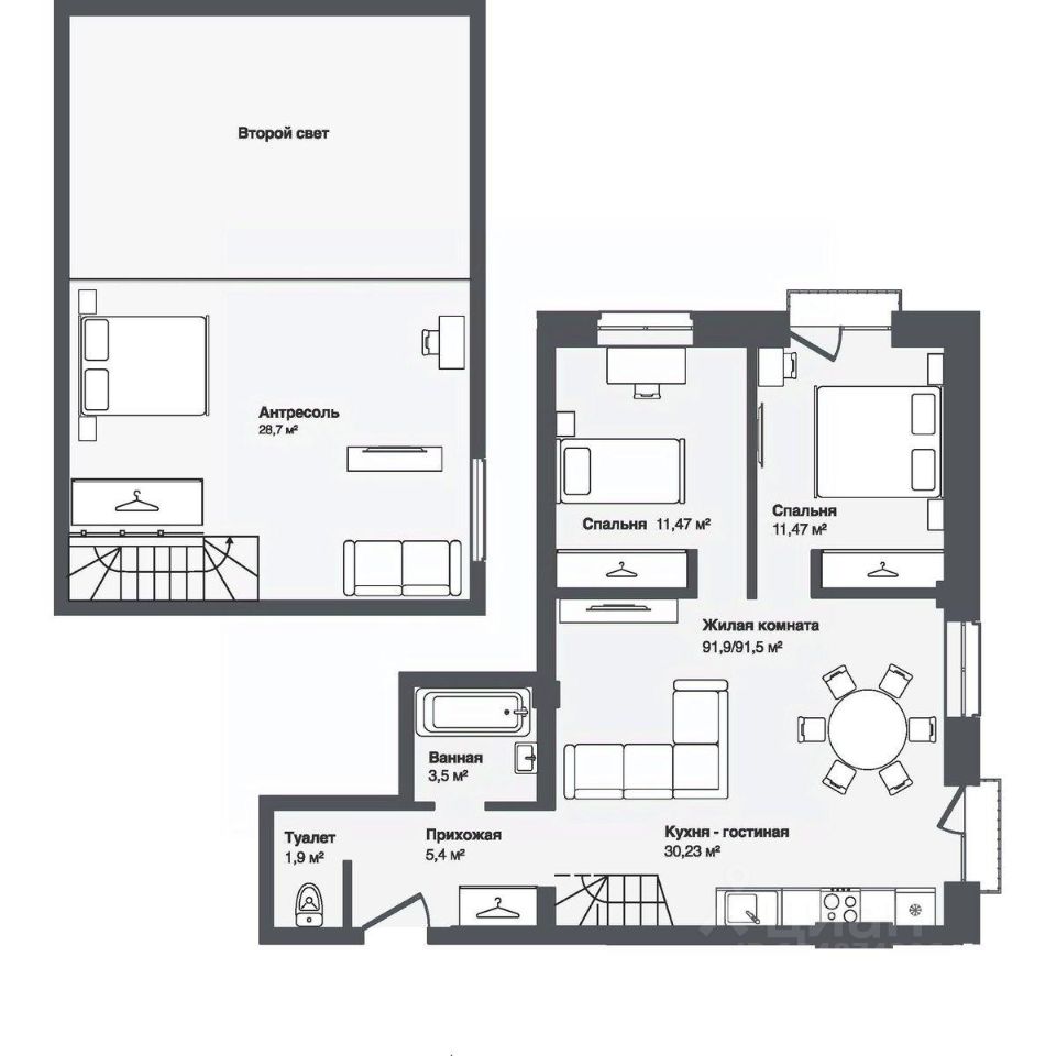 В комплексе представлены студии и 13-комнатные квартиры площадью от 30,2 до 91,9 м². Планировки продуманы для удобной жизни — просторные кухни-гостиные, террасы и панорамные окна наполняют квартиры светом.