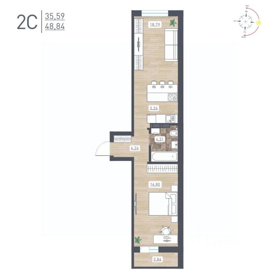 Общая площадь48,84 м2