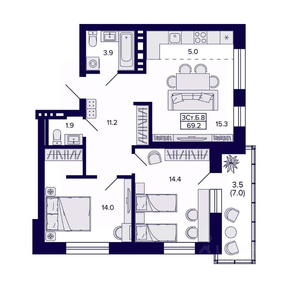 продам 3-к, 18-й Бронный переулок, гп 19 300 000 ₽