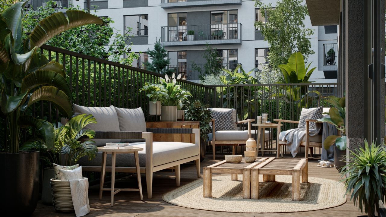 Архитектурная выразительность фасадов достигается за счёт практичных и в то же время эстетичных решений. Большие окна помогают наполнить комнаты естественным светом. Летние помещения в каждой квартире служат дополнительным пространством для уединения. Также здесь можно установить кондиционер. На верхних этажах спроектированы террасы, которые формируют архитектурный облик зданий. На первых этажах домов будут работать магазины и полезные сервисы.