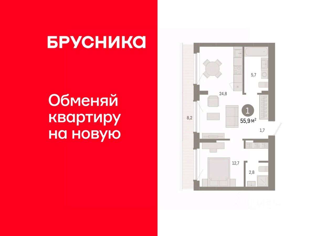 Продаётся с паркингом. Квартира с кухней-гостиной и одной спальней в квартале ''Лебедевский''. Особенности планировки: предчистовая отделка. квартиры в нашей базе: ЛБД01.1-Ж6.8.4.