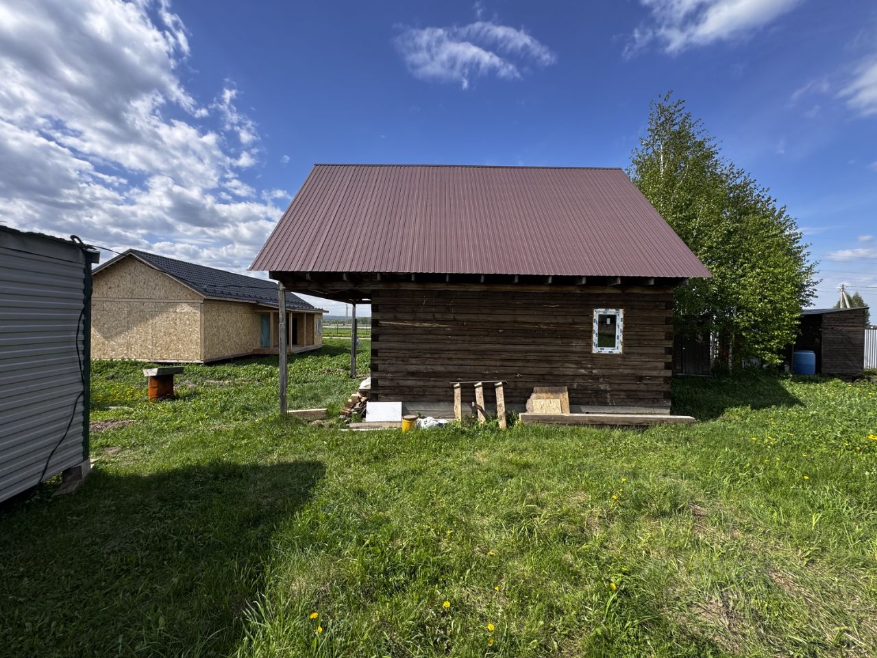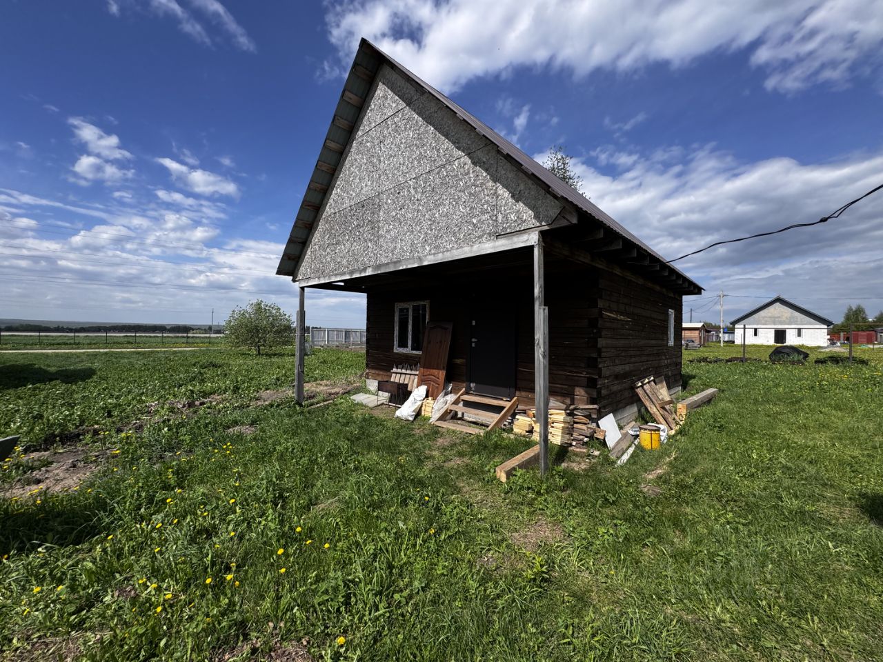 Дом не достроеный ( коробка) 6 на 6 метров. Общая площадь 30кв.м. Стоит на ленточном фундаменте. В дом заведена центральная вода из скважины от общества. Свет заведен. Сделан слив, можно сделать дом-баню. Септик 6 куб. Стоит хорошая входная дверь!