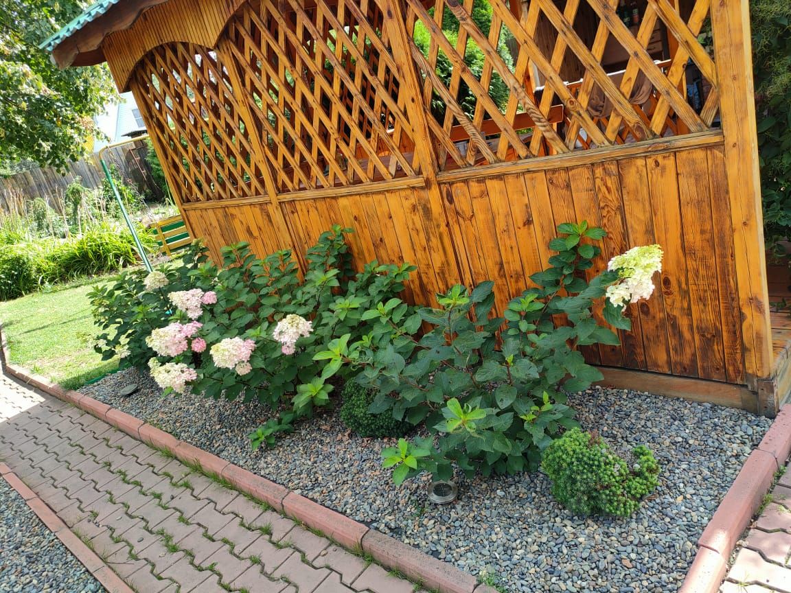 Дача .Первый этаж кирпичный, второй мансарда. Баня с комнатой отдыха и летним душем, лентяя кухня, сарайка, барбекю, беседка. На участке туи, ель, лиственница, гортензии, розы, пионы, яблони, малина, клубника. 4 евро грядки для посадки. Пруд. В шаговой доступности магазин, пляж. Зимой дороги чистят