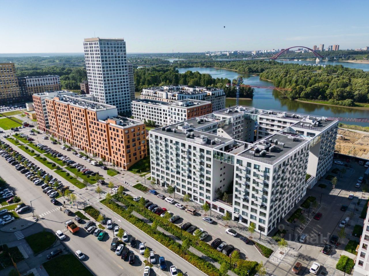 Микрорайон ''Европейский Берег'' расположен в Октябрьском районе Новосибирска на берегу Оби напротив зелёного острова Кустовой, между двумя мостами — Октябрьским и Бугринским. Вблизи две остановки общественного транспорта, пятнадцать минут на автобусе и двадцать пять минут пешком до станции метро ''Речной Вокзал'', откуда можно уехать в любую точку города на метро, автобусе или электричке. Рядом — гипермаркет ''Лента'', детские сады, школа, поликлиника, почта, удобный выезд через Бугринский мост до ТЦ ''Мега''. Первые этажи домов имеют общественную функцию: магазины, кафе, аптеки, детские центры и другие полезные сервисы.