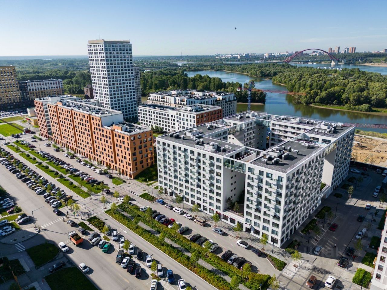Микрорайон ''Европейский Берег'' расположен в Октябрьском районе Новосибирска на берегу Оби напротив зелёного острова Кустовой, между двумя мостами — Октябрьским и Бугринским. Вблизи две остановки общественного транспорта, пятнадцать минут на автобусе и двадцать пять минут пешком до станции метро ''Речной Вокзал'', откуда можно уехать в любую точку города на метро, автобусе или электричке. Рядом — гипермаркет ''Лента'', детские сады, школа, поликлиника, почта, удобный выезд через Бугринский мост до ТЦ ''Мега''. Первые этажи домов имеют общественную функцию: магазины, кафе, аптеки, детские центры и другие полезные сервисы.