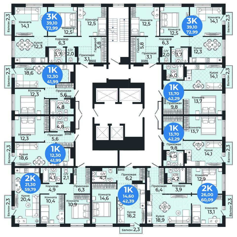 Общая площадь41,99 м2