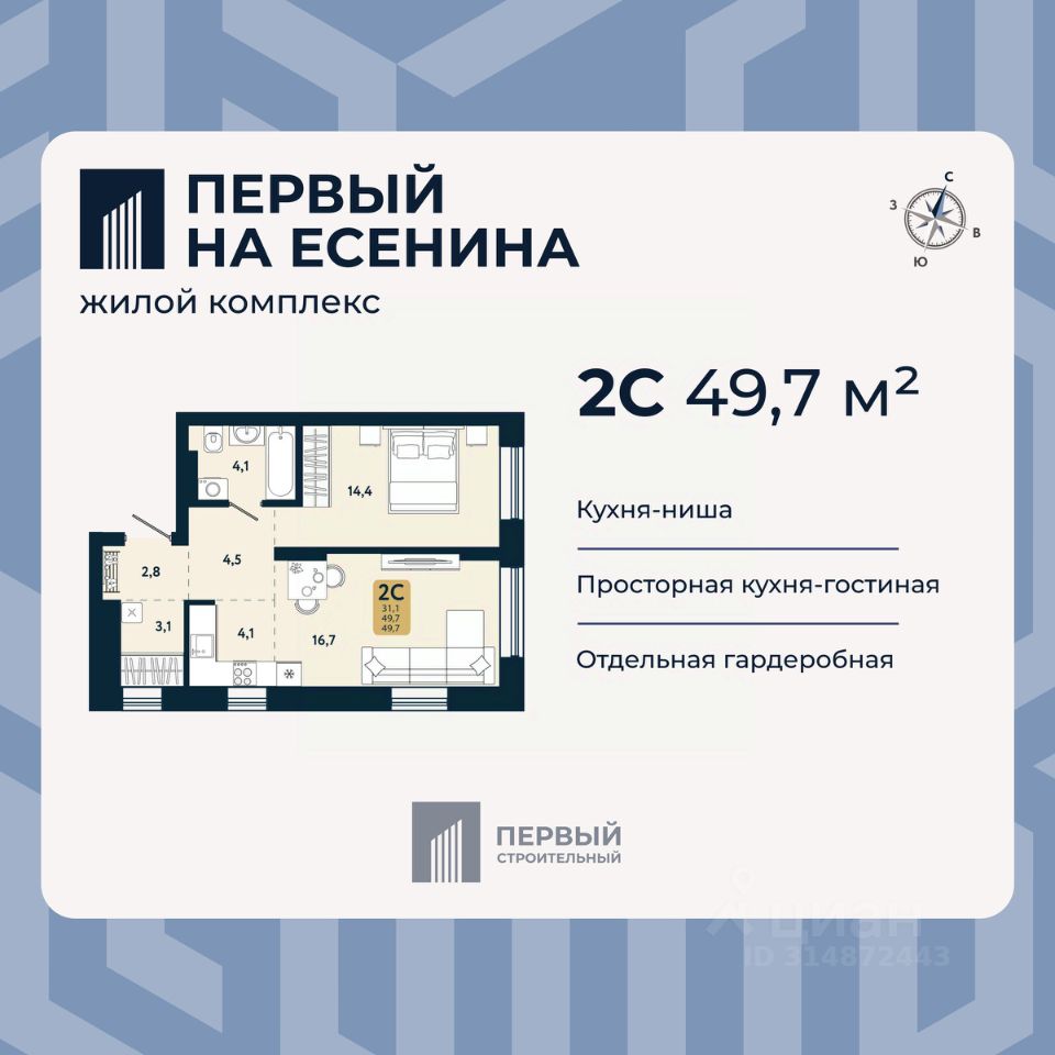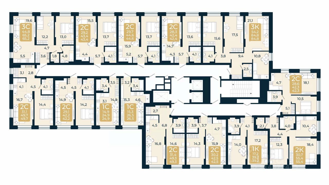 В доме только двух и трехкомнатные квартиры