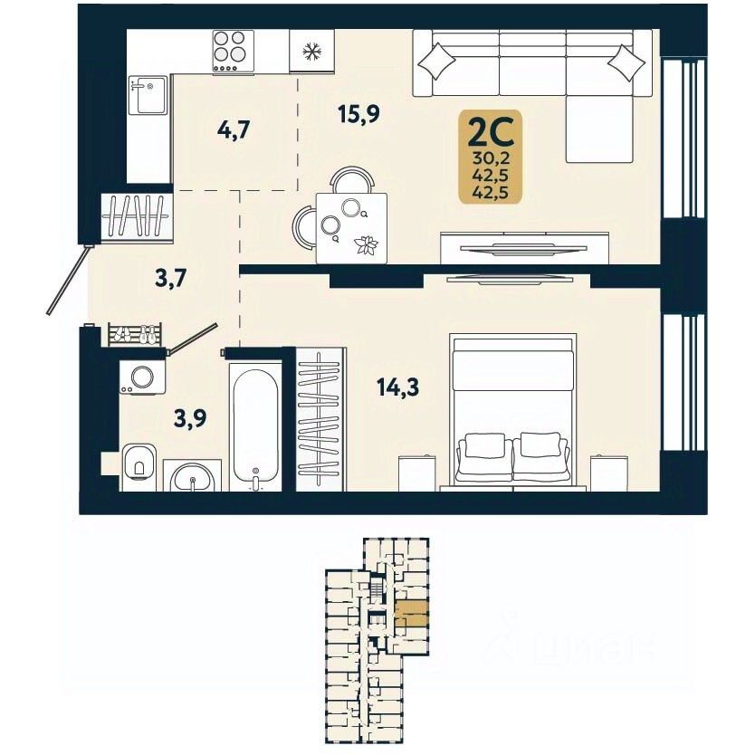 продам 2-к, Есенина, 12/3в стр.7 441 200 ₽