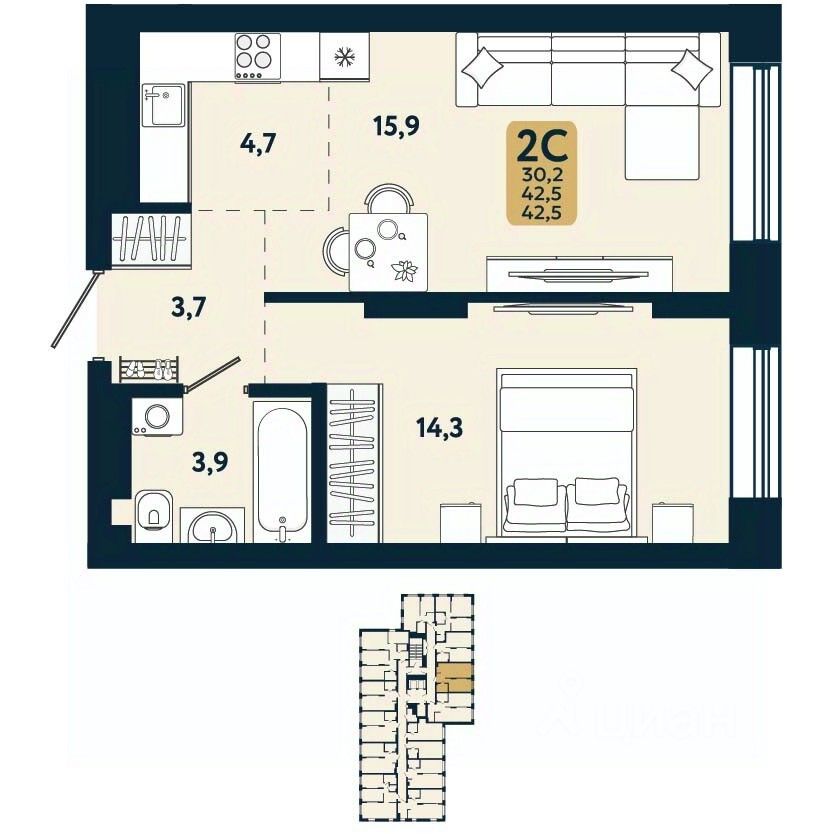 продам 2-к, Есенина, 12/3в стр.7 301 400 ₽