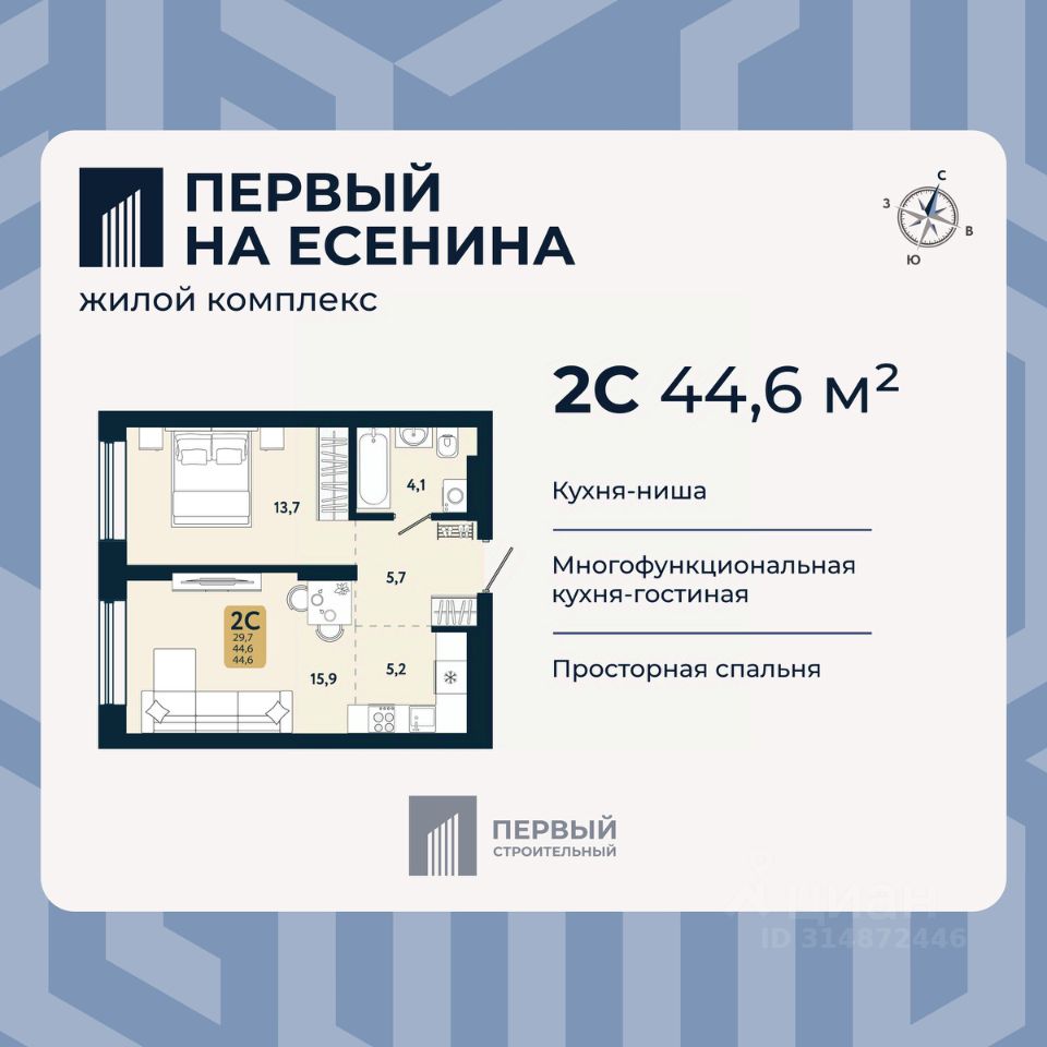 В доме только двух и трехкомнатные квартиры