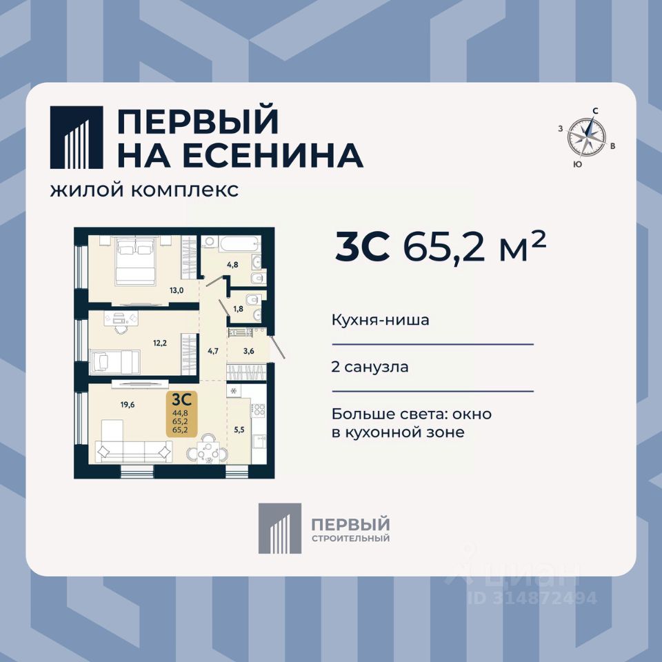 В доме только двух и трехкомнатные квартиры