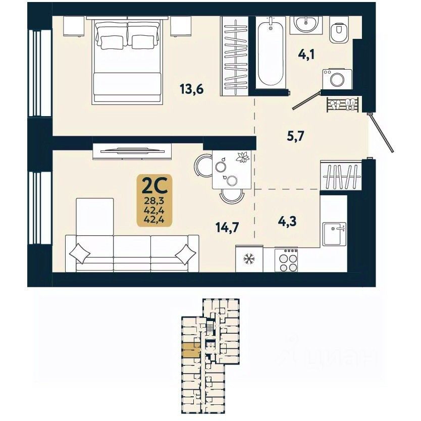 продам 2-к, Есенина, 12/3в стр.7 956 400 ₽