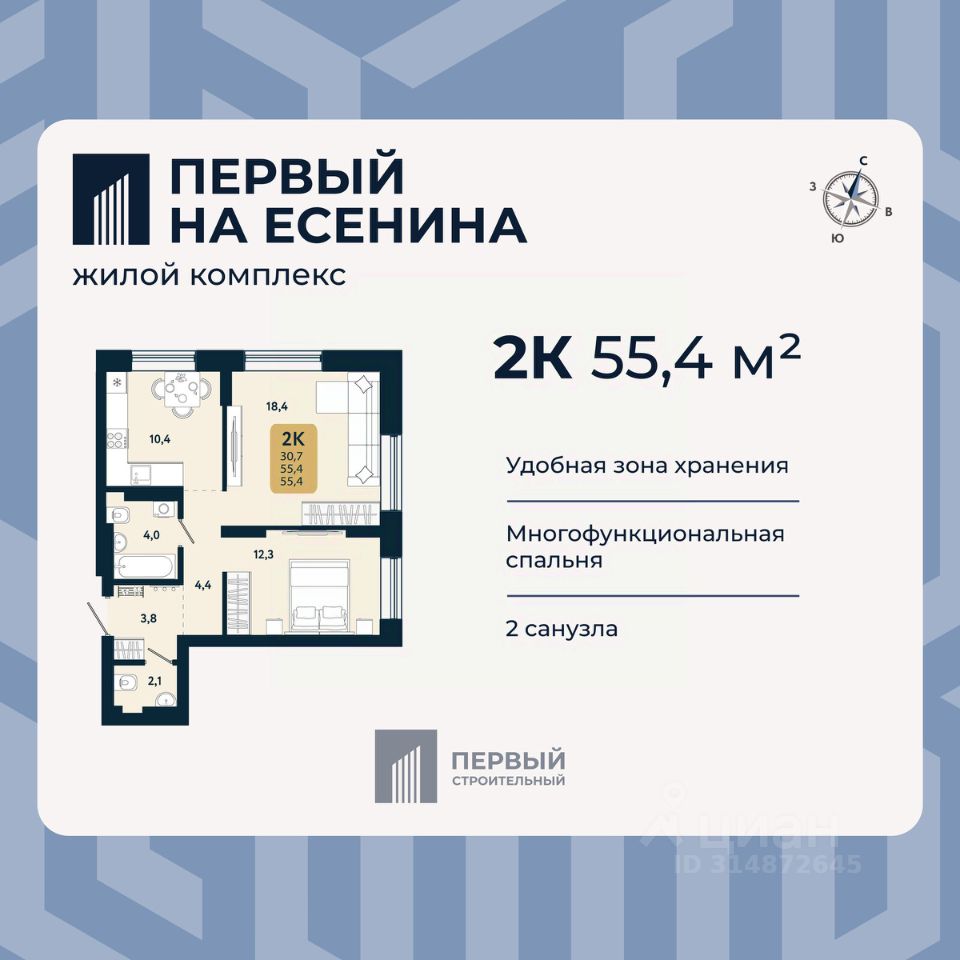 В доме только двух и трехкомнатные квартиры