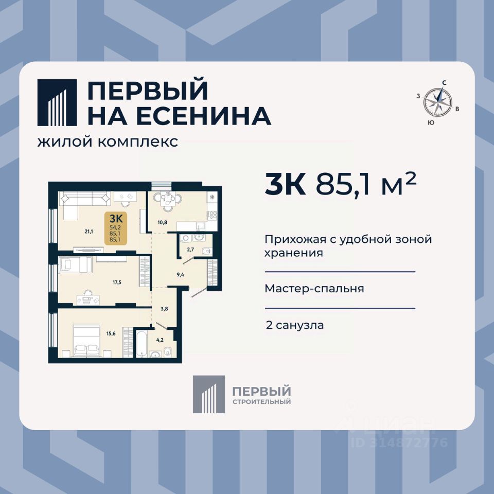 продам 3-к, Есенина, 12/3в стр.12 124 500 ₽