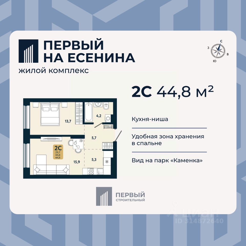 продам 2-к, Есенина, 12/3в стр.7 690 400 ₽