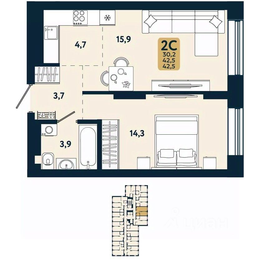В доме только двух и трехкомнатные квартиры