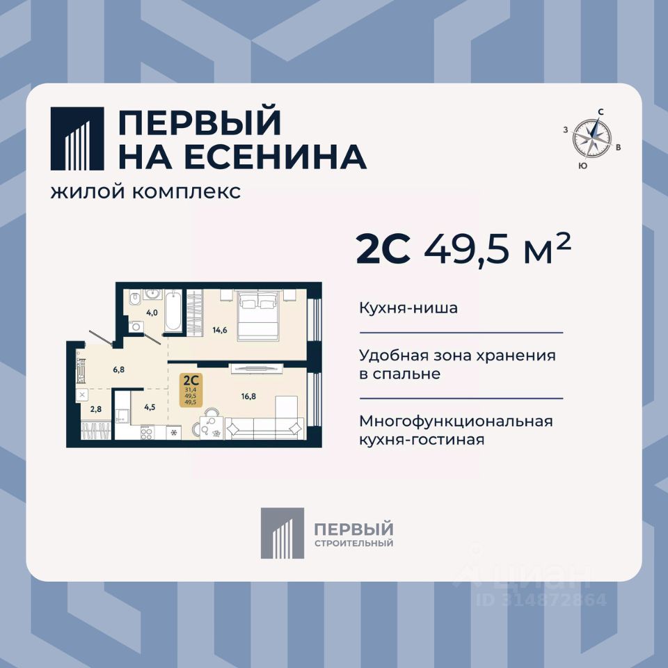продам 2-к, Есенина, 12/3в стр.7 728 700 ₽