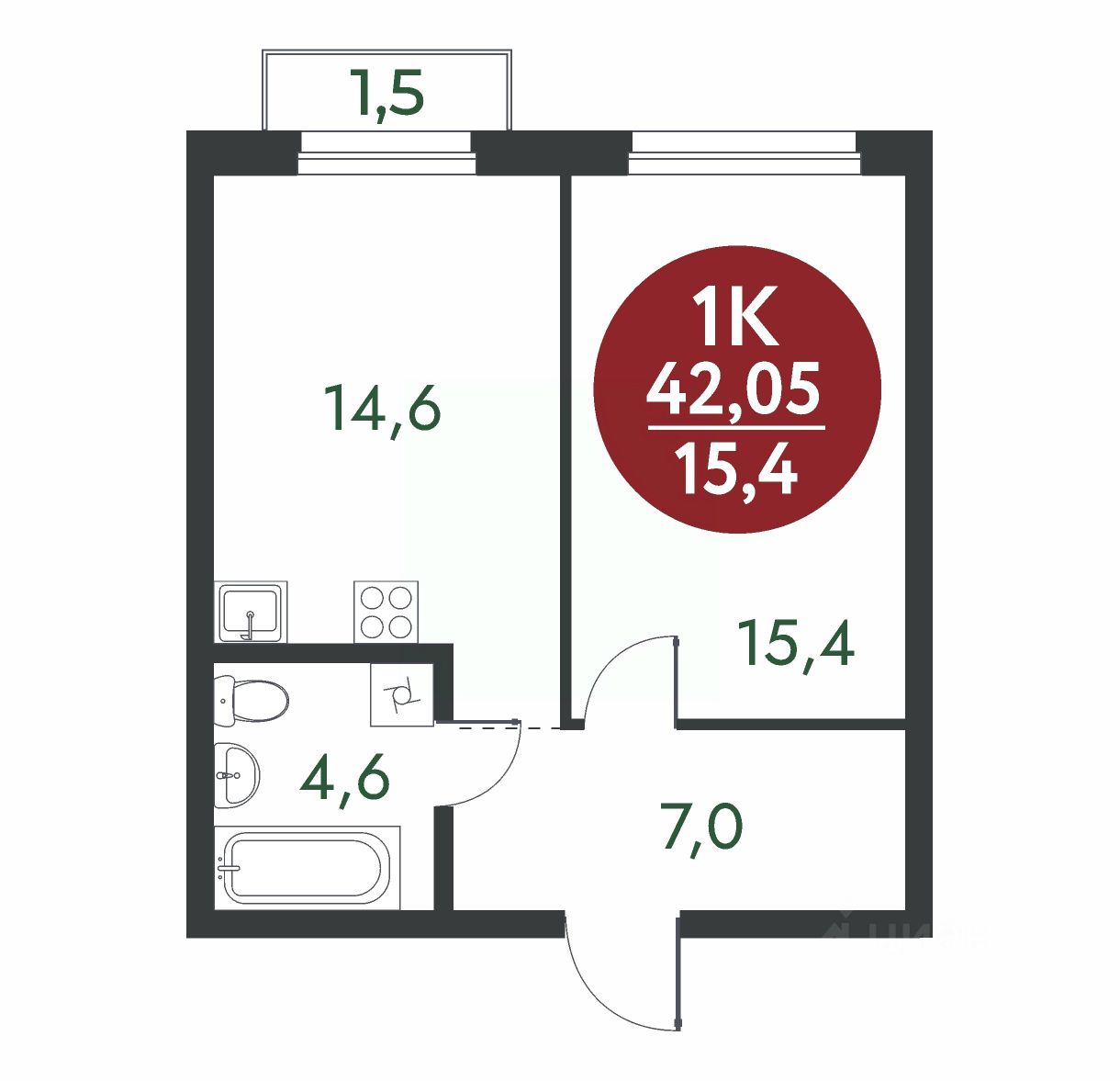 Общая площадь42,05 м2