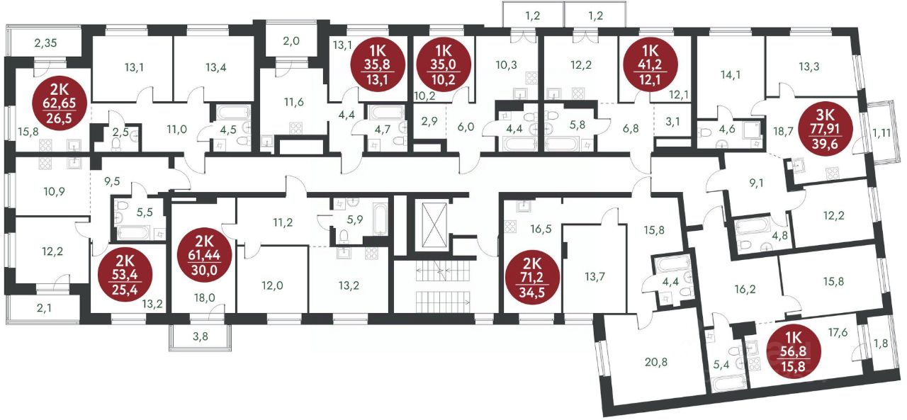 Жилая площадь34,5 м2