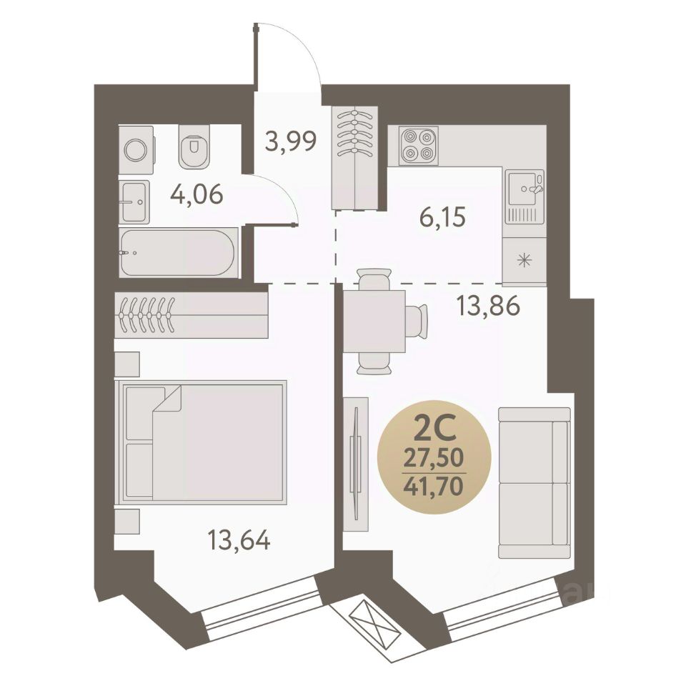 Общая площадь41,7 м2