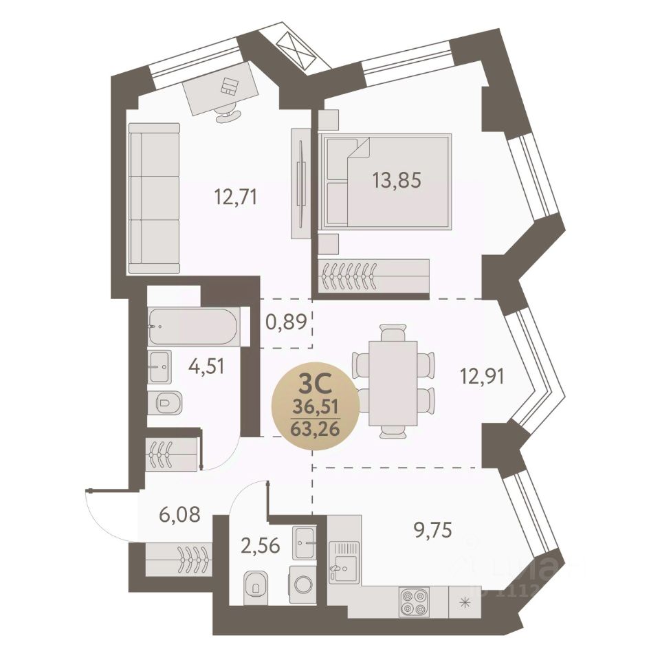 Общая площадь63,26 м2