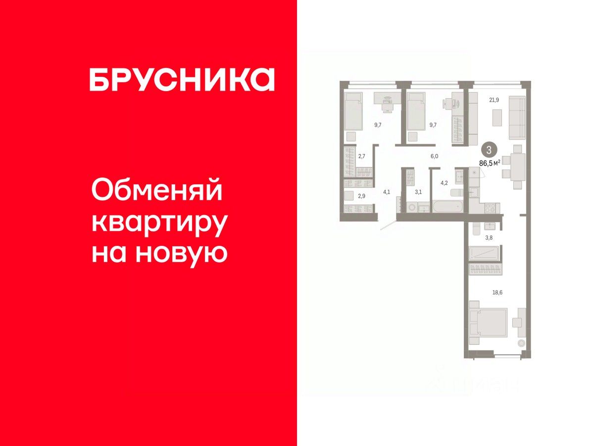 Продается 3-комн. квартира от застройщика с предчистовой отделкой в Микрорайон ''Европейский Берег'' на 4 этаже. Общая площадь: 86.52 кв.м., жилая: 38 кв.м., площадь просторной кухни-гостиной: 21.9 кв.м. Квартира - распашонка, без проходных комнат, окна выходят на paзные стороны дома. В квартире два совмещенных санузла. Высота потолков 2.7 м.