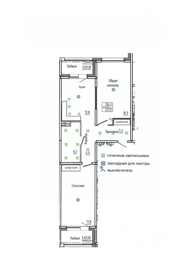 Общая площадь67 м2