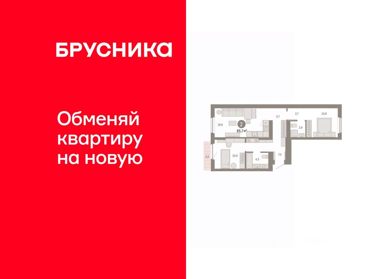 Продается двухкомнатная квартира от застройщика с предчистовой отделкой в ЖК ''Пшеница'' на 3 этаже. Общая площадь: 65.65 кв.м., жилая: 21.8 кв.м., площадь просторной кухни-гостиной: 18.9 кв.м. Квартира - распашонка, без проходных комнат, окна выходят на paзные стороны дома. В квартире один балкон, два совмещенных санузла. Высота потолков 2.82 м.