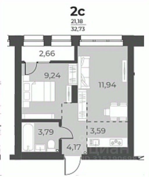 Двухкомнатная квартира с объединенной кухне-гостиной в с отделкой ''WHITE BOX'' в ЖК ''Русское солнце'' на 6 этаже (этажность данной секции всего 8 этажей!!!) Дом ''ТЕРЕМНОЙ''