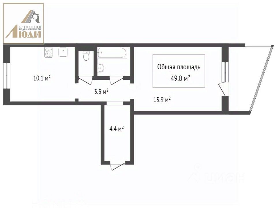 Изолированная планировка с раздельным санузлом (распашонка - окна выходят на разные стороны дома).