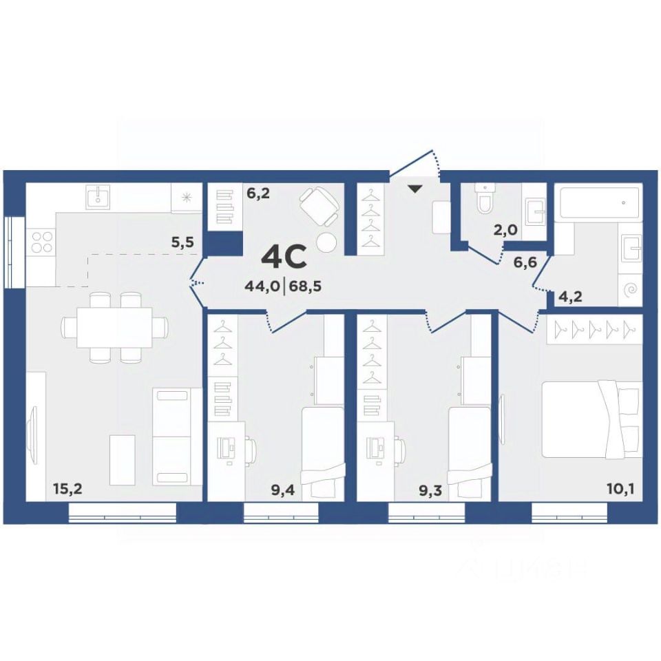 Общая площадь68,5 м2