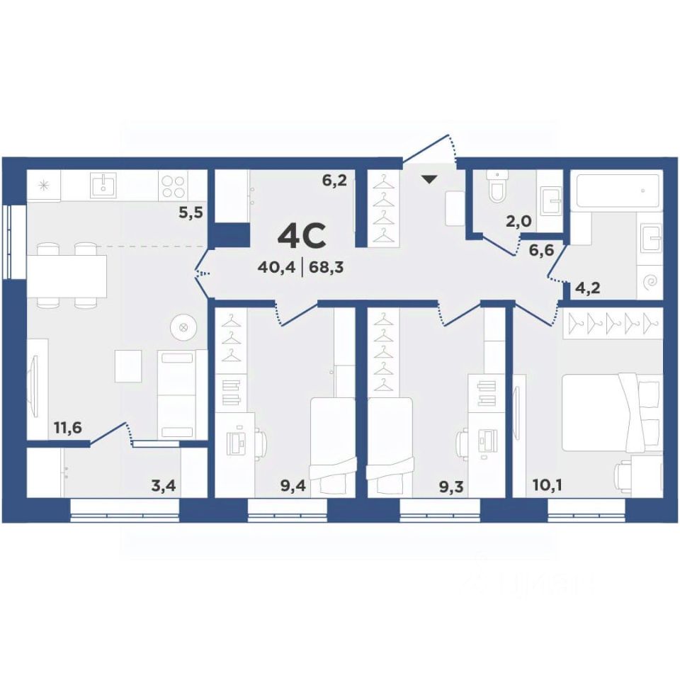 Общая площадь68,3 м2
