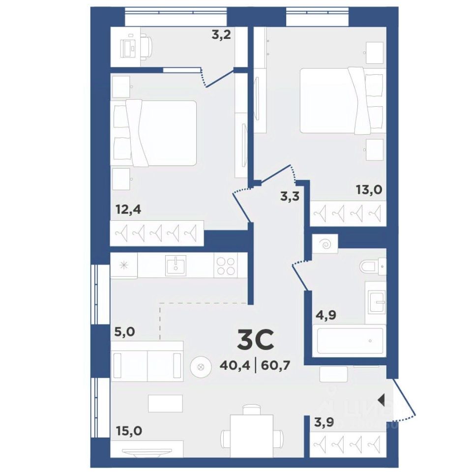 Общая площадь60,7 м2