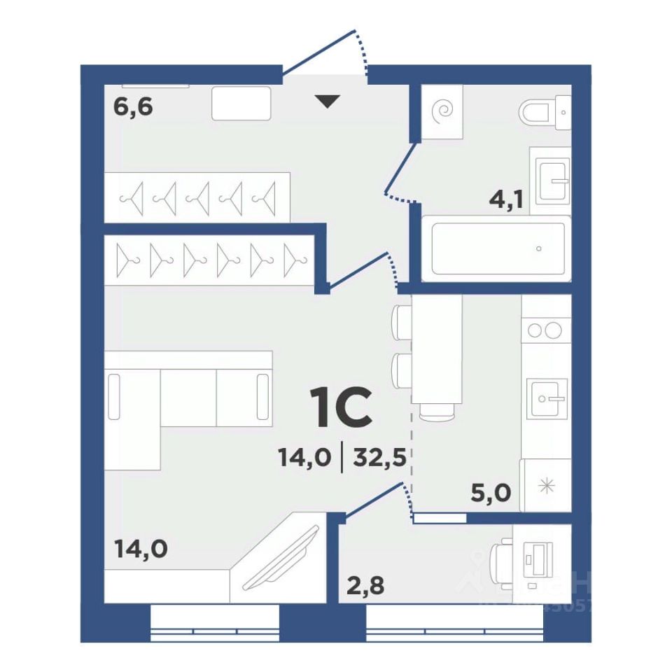 Общая площадь32,5 м2