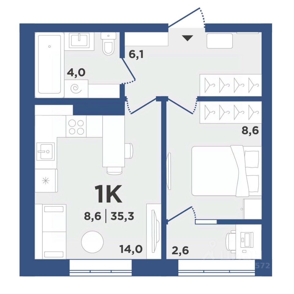 Общая площадь35,3 м2