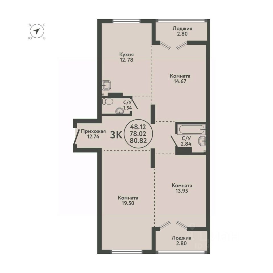 Общая площадь80,82 м2