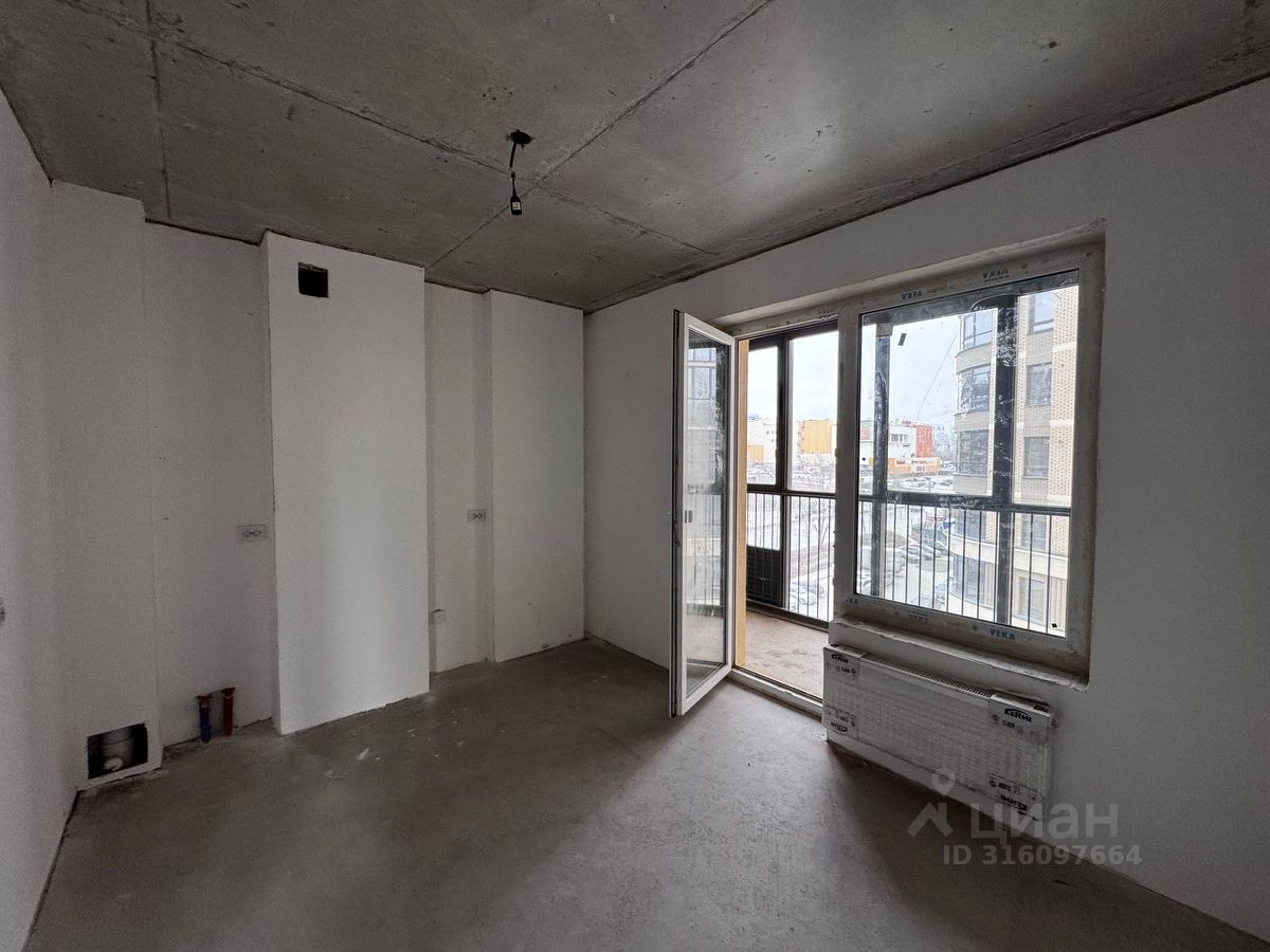 Электрика разведена. Помещение с чистовой самоотделкой и остекленной лоджией: отштукатуренными стенами, стяжкой пола, установленными кашированными окнами, радиаторами и качественной входной дверью.