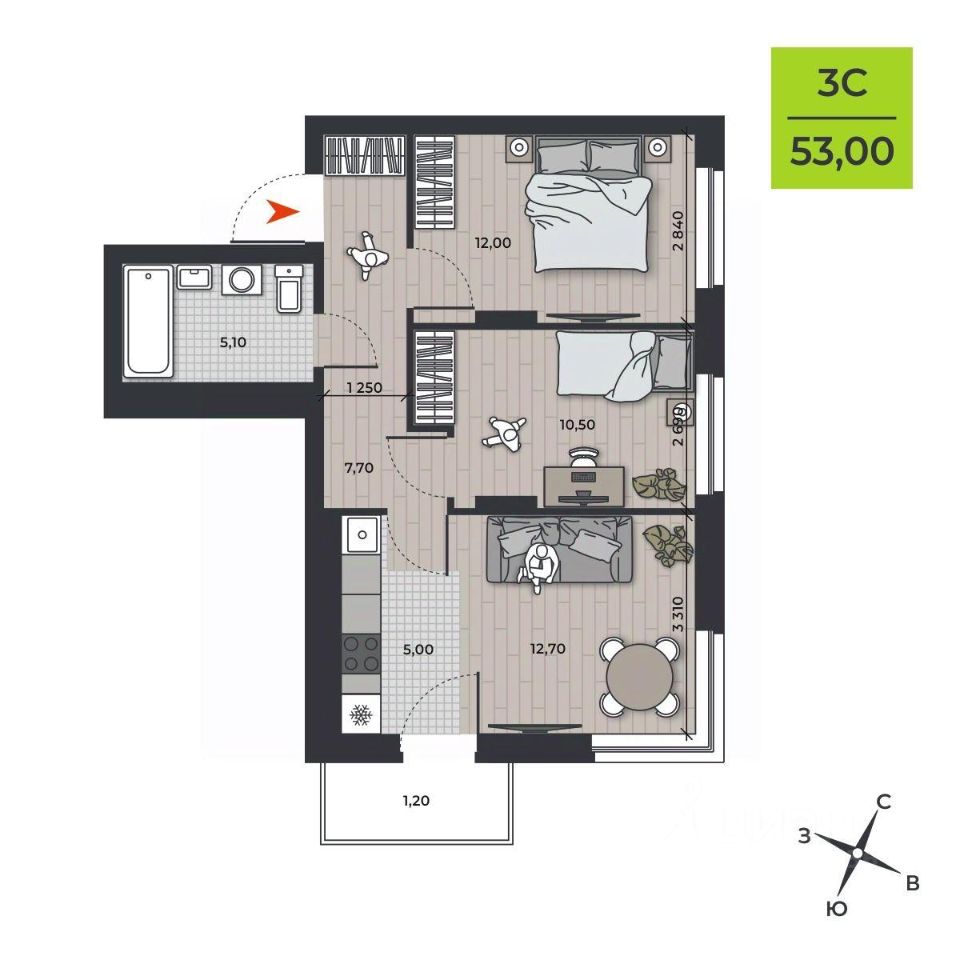 продам 3-к, Курчатова, 16 стр.7 223 287 ₽