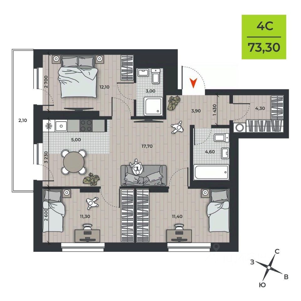 продам 4-к, Курчатова, 16 стр.8 890 020 ₽