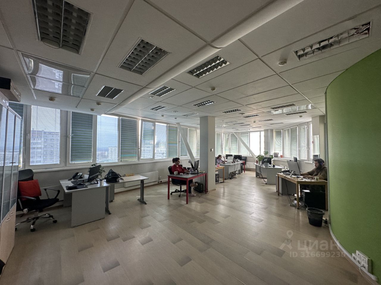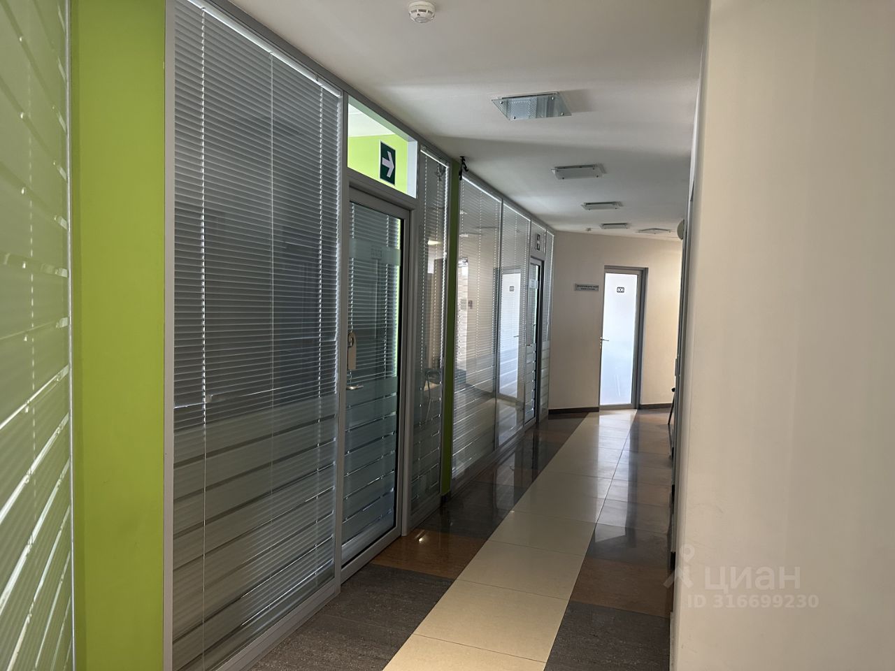 Коридоры и некоторые кабинеты разделены светопрозрачными перегородками.