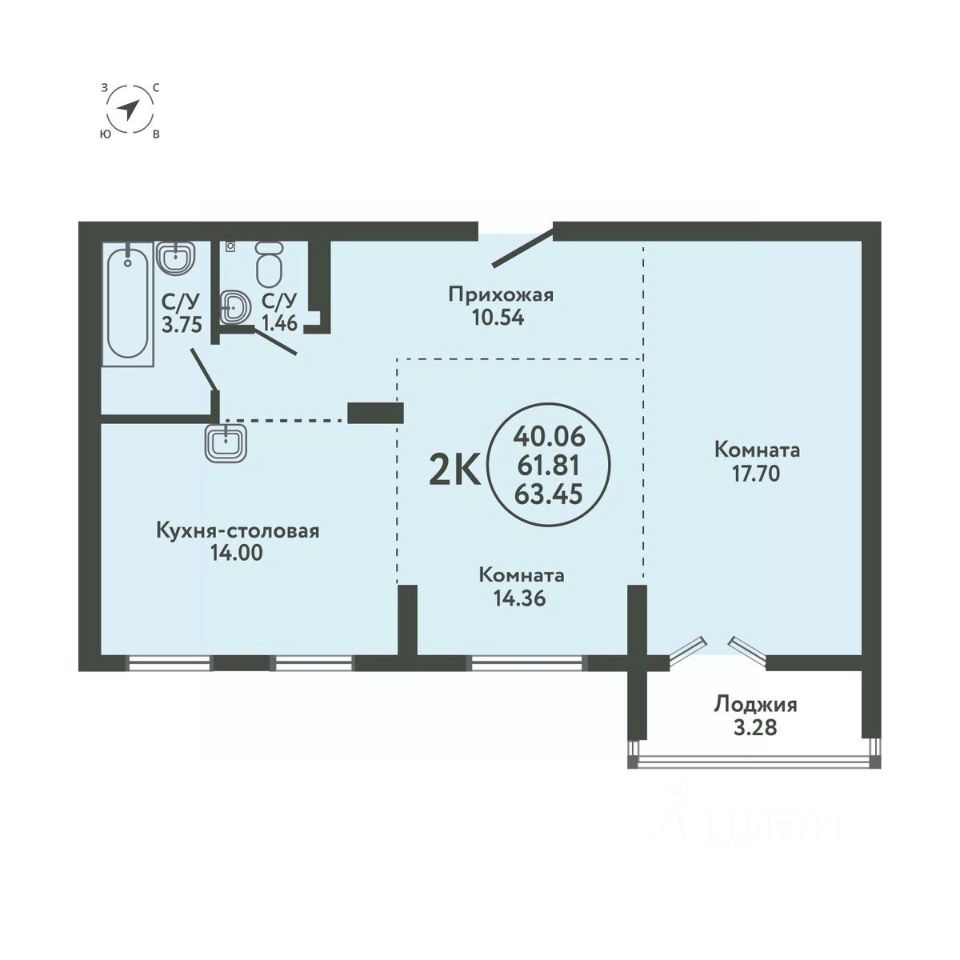 Общая площадь63,45 м2