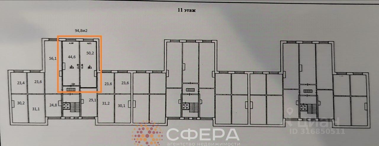 Нежилое помещение под самоотделку 94,8 м2 .