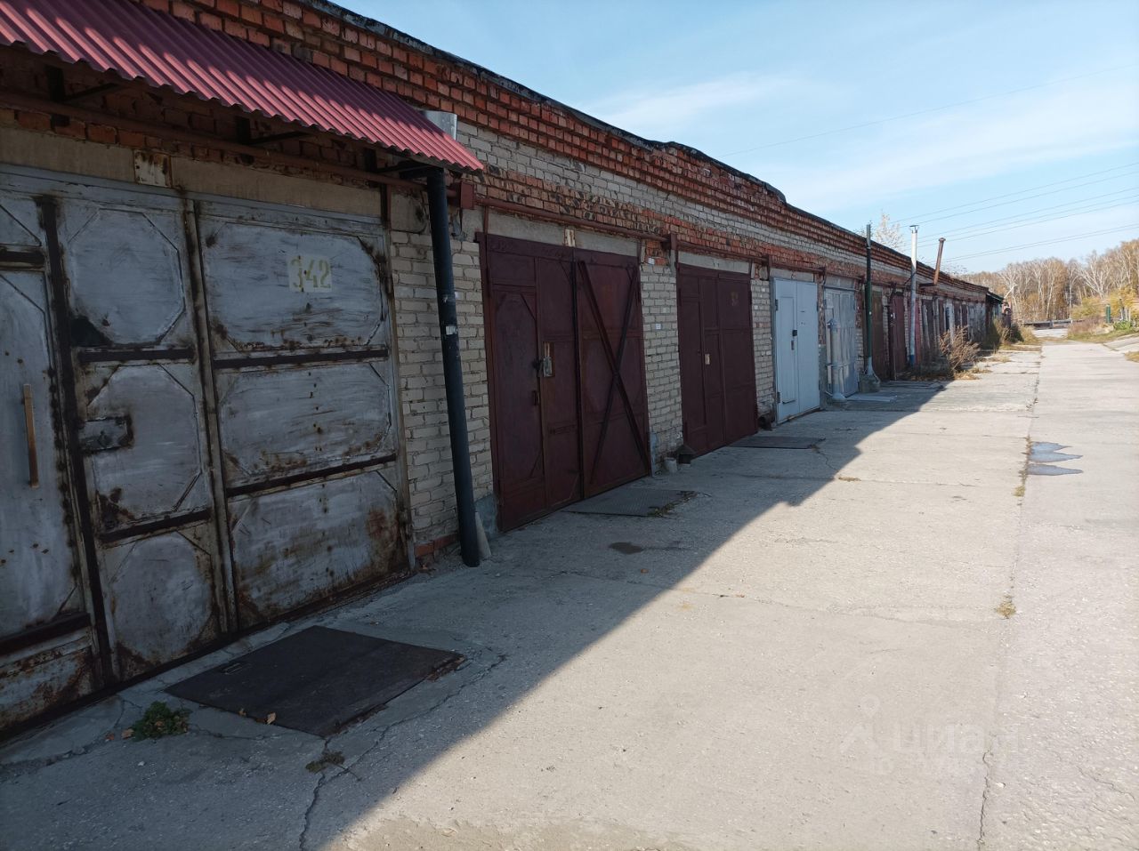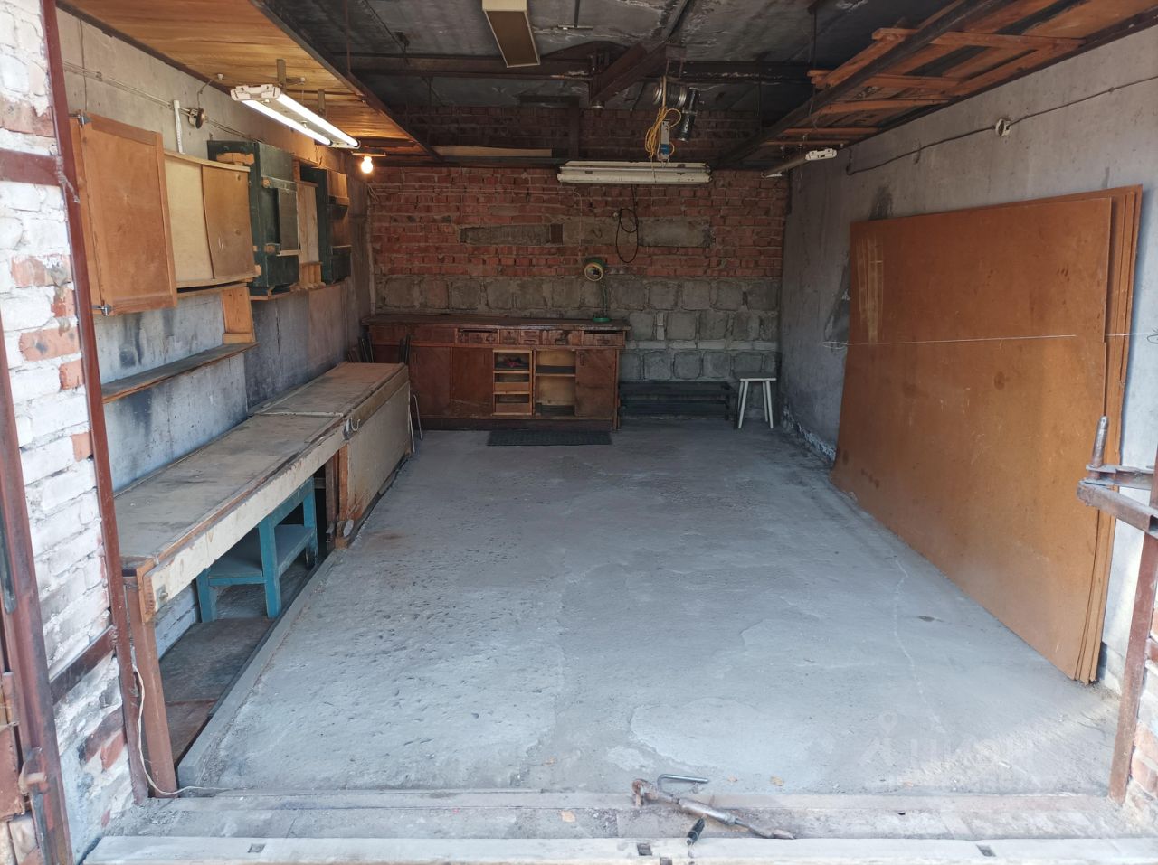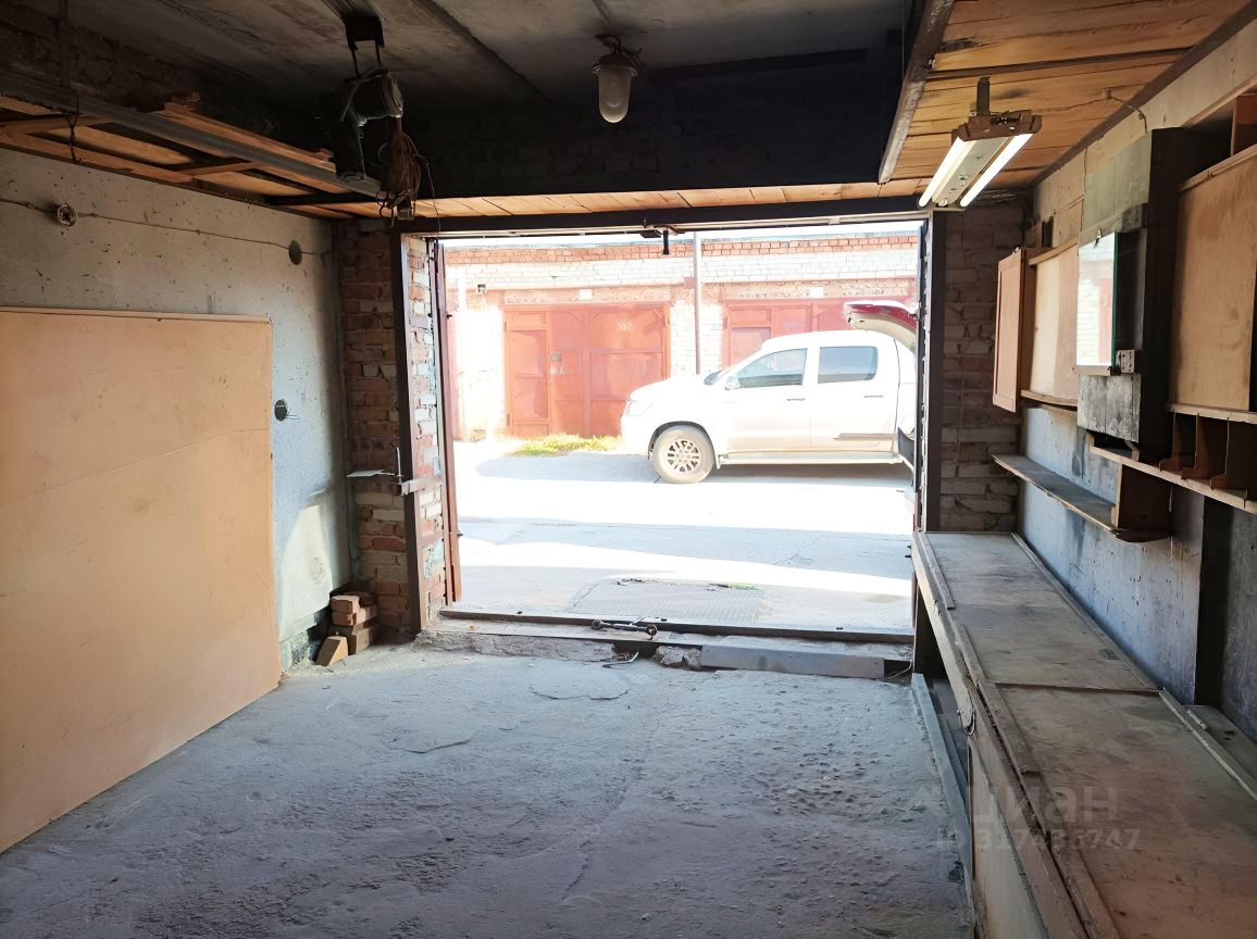 Гараж стоит вторым верхним рядом. Ямы нет. Вход в погреб находится перед гаражными воротами, открывается из гаража. В прошлом году перекрыл кровлю. Поставил новый счетчик. Имеются полки и верстаки. Есть лебёдка.