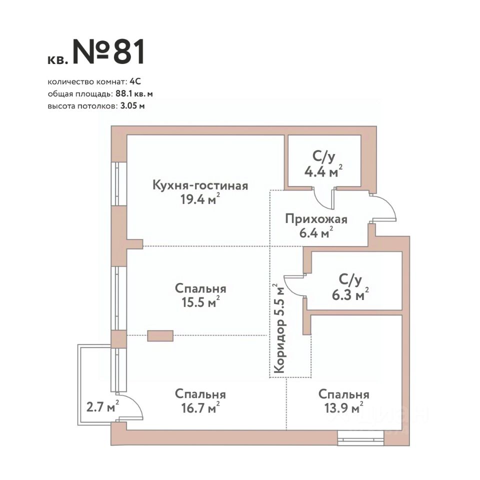 Продаётся 4-комнатная квартира в строящемся доме (Дом 18 - Блок А), срок сдачи: II-кв. 2028, общей площадью 88.1 кв.м., на 2 этаже. Эко-квартал FLORA & FAUNA'' - жилой комплекс премиум-класса в Заельцовском бору на берегу Оби в 15 минутах от площади Калинина..